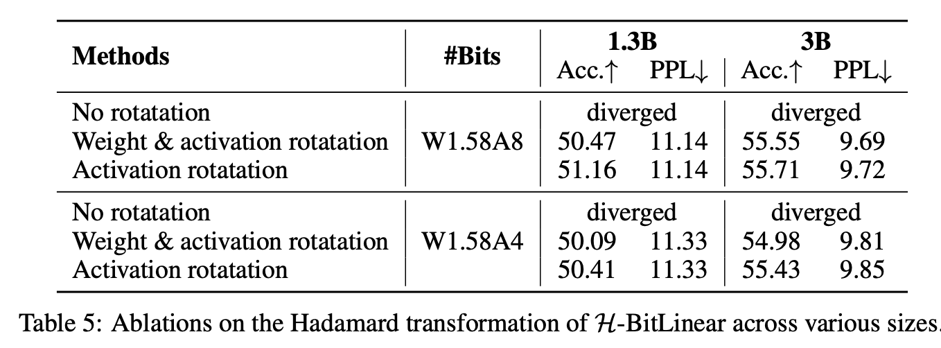 SpinQuant’s PPL drops from 19.80 → 13.52 with this fix, but still trails BitNet v2.