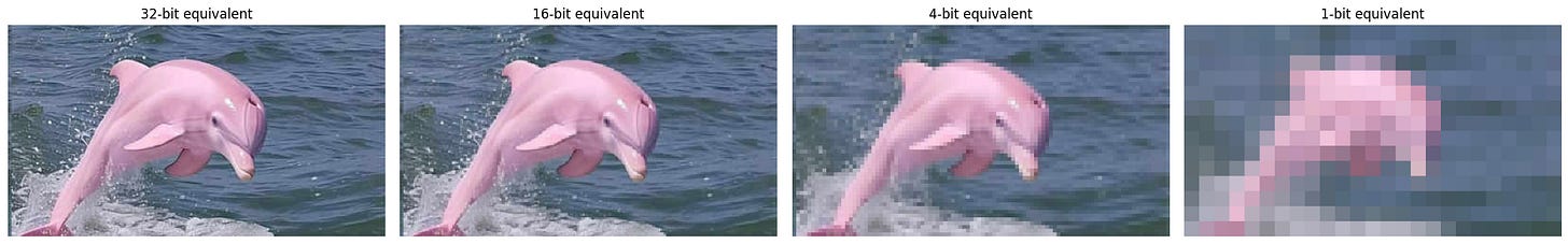 However, once you start imagining 1-bit or ternary models where each weight can only be -1, 0, or +1, you are truly at the endgame of precision compression.