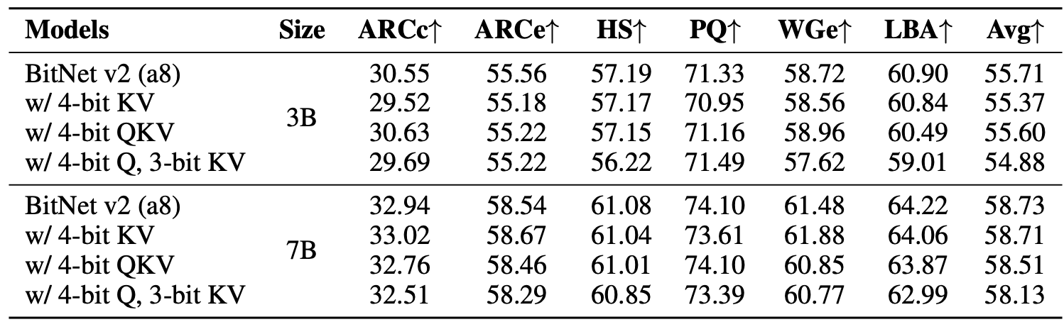 BitNet v2 (a4) matches or beats BitNet a4.8 in accuracy while being fully 4-bit (no hybrid).