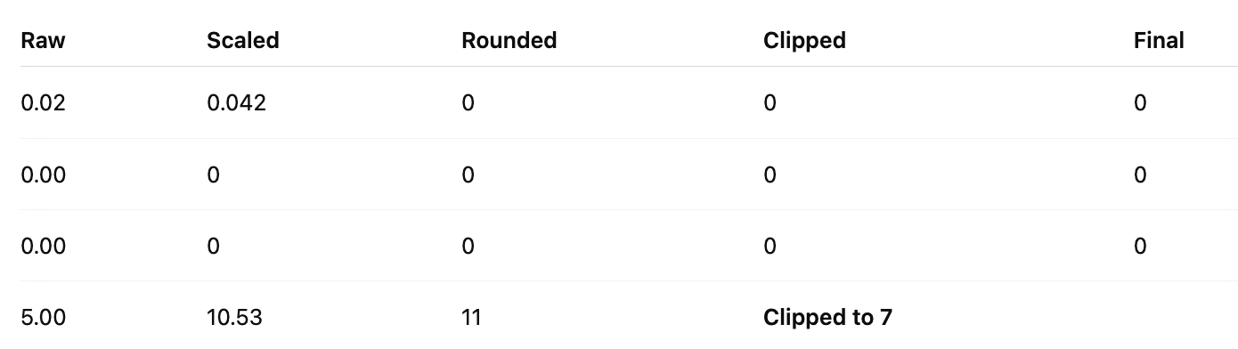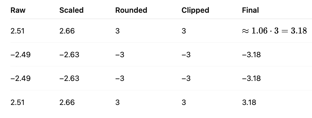 If you quantize first, you take your high-resolution vector x and reduce its values to coarse levels. For example: a float vector like [0.57,1.03,−0.45][0.57, 1.03, -0.45][0.57,1.03,−0.45] becomes [0.5,1.0,−0.5][0.5, 1.0, -0.5][0.5,1.0,−0.5]