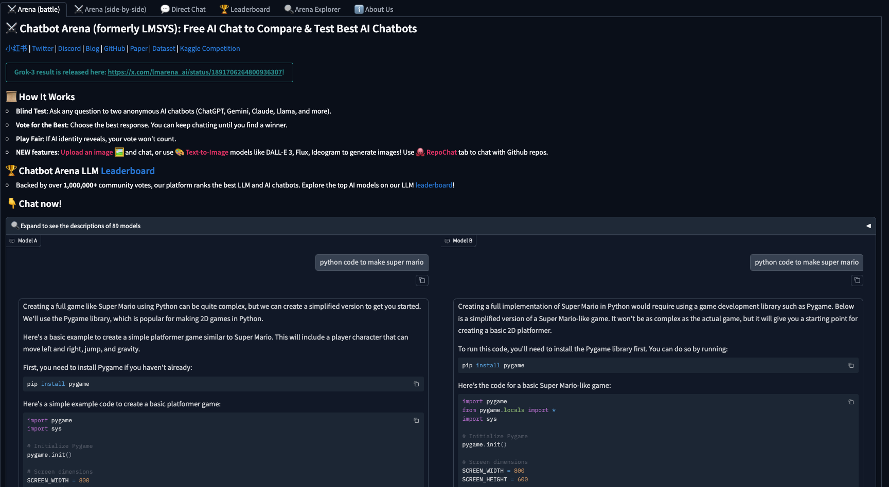 Description: Chatbot Arena is an open platform developed by the Large Model Systems Organization (LMSYS) for evaluating Large Language Models (LLMs) based on human preferences. It features anonymous, randomized battles between models in a crowdsourced manner, allowing users to compare and assess different LLMs. The platform has been operational for several months, providing a dynamic and evolving leaderboard that reflects the performance of various LLMs based on real user interactions. It has become a widely referenced resource in the AI community, cited by leading LLM developers and companies.
