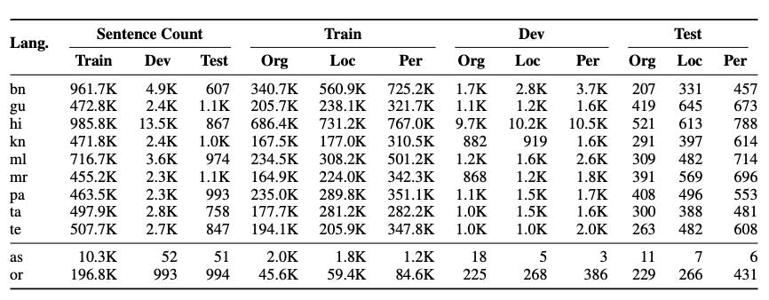 Number of Datapoints: The dataset comprises over 400,000 sentences annotated with at least 100,000 entities across 9 out of 11 major Indian languages.