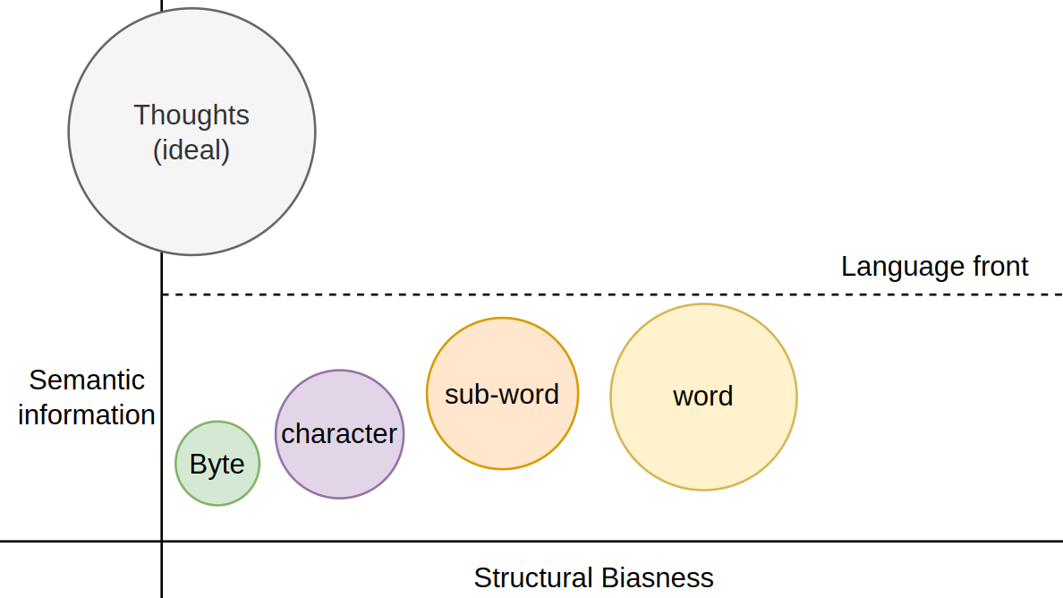 As evident from the above graphs and the blog; word level tokenization is possibly the worst, whereas entity/character level are sub-optimal and bytes is closest to true representation as there is no biasness in terms of relations/aggregation of entities (for machine), but, it's encoding/representation at scale is hard (more breaks/pieces -> more tokens -> more compute) and obviously thought is the best representation of thought. Everything boils down to good quality representations.