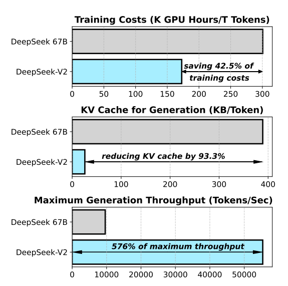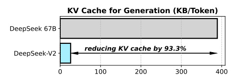 As shown in their research, compared to their powerful 67B dense model, DeepSeek-V2 with MLA reduces the KV cache size by an incredible 93.3%!