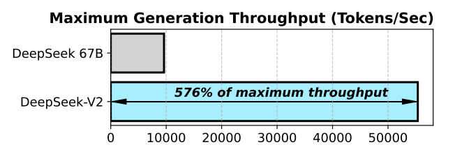 The data is clear. Benefiting from the tiny KV cache and other optimizations, DeepSeek-V2 achieves a generation throughput 5.76 times higher than its dense MHA-based predecessor.