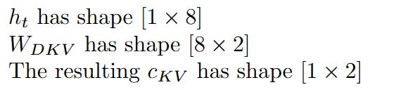 c_KV: The latent Key-Value sketch (shape [1 x 2]), which is the vector we would store in our cache.