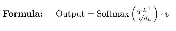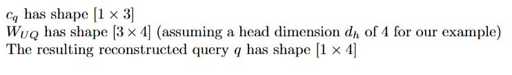 Now that we have our fully reconstructed q, k, and v vectors, all of the same dimension (d_h = 4), the rest of the process is identical to the standard Multi-Head Attention we know and love.