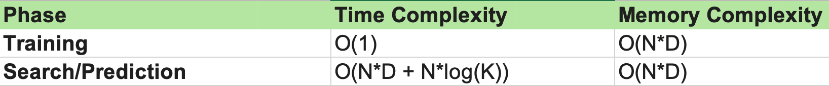 In a research environment, we evaluate algorithms based on how they scale as data grows. Let N be the number of data points and D be the number of dimensions (features):