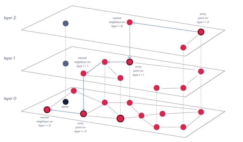 Modern vector databases rely on Hierarchical Navigable Small Worlds (HNSW) to perform approximate nearest neighbor search.