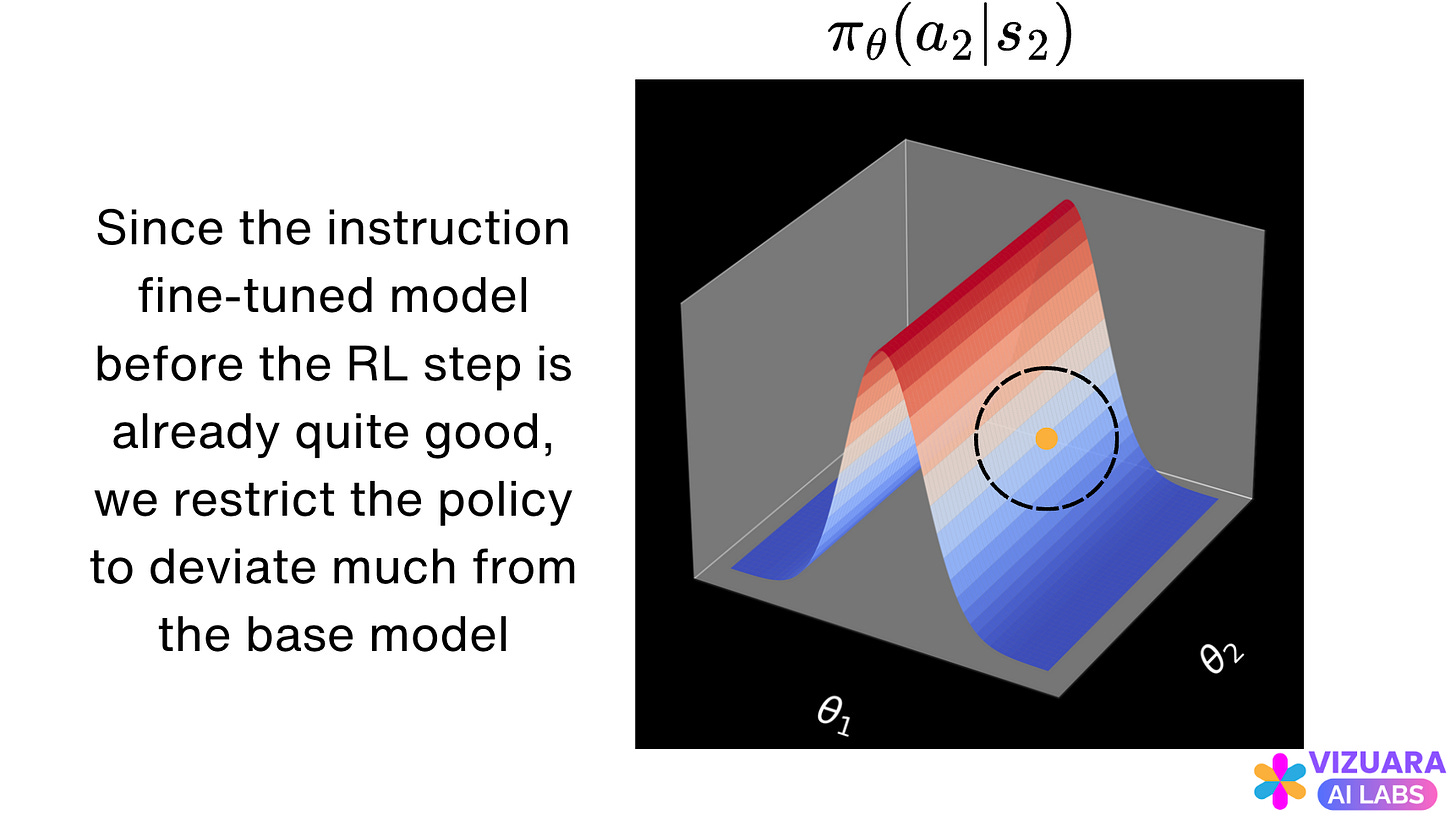 Researchers found out that this policy update rule does not work in practice. Largely because, the new policy has deviated too much from the old policy which is the instruction fine-tuned model before the Reinforcement Learning step.