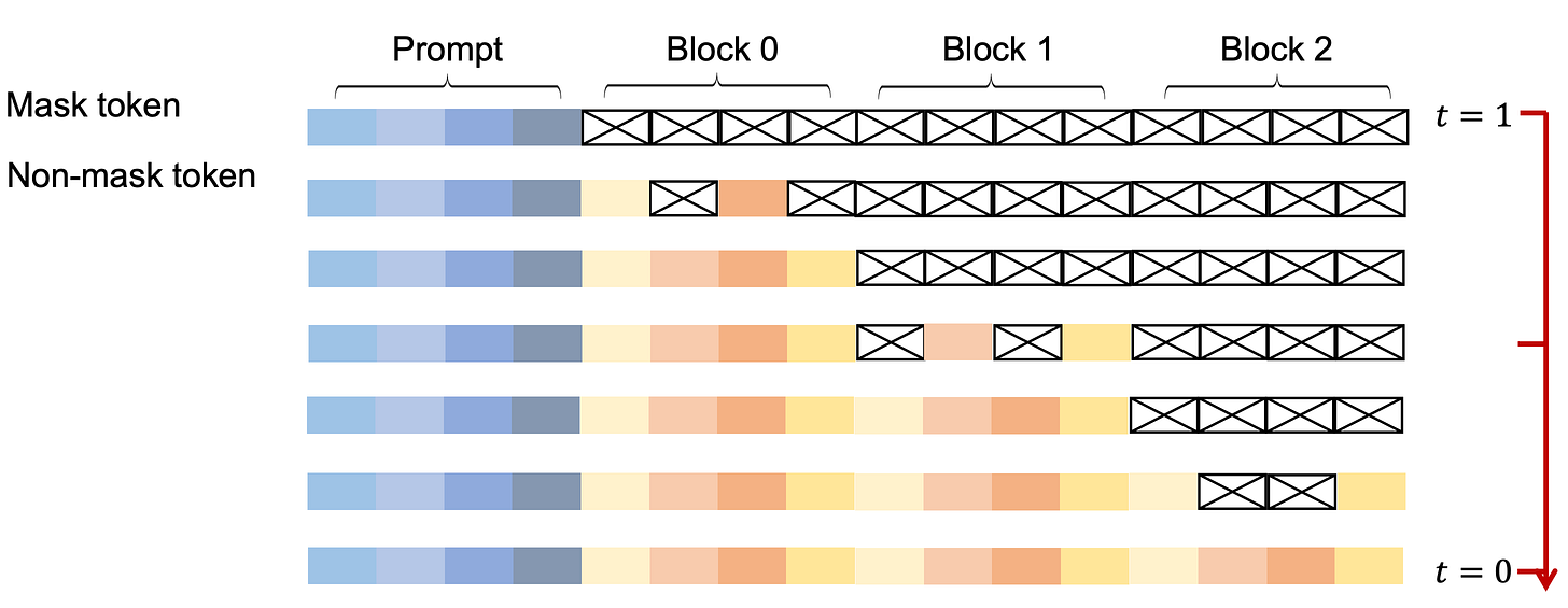 Even beyond the architectural issue itself, it's more about objective, in conventional LLMs we generate token by token, why not generate whole sequence at a time and then selectively clean it? or maybe do the same with parts of sequences?