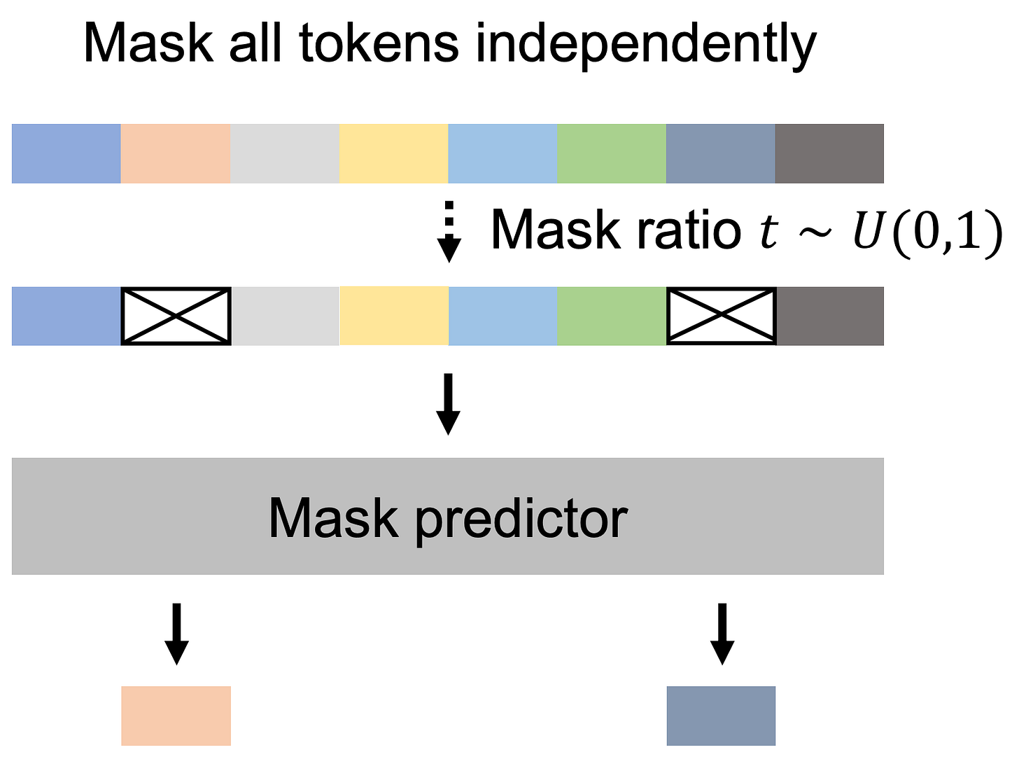 This step is simple MLM (hence no annotated/labelled data) as I pointed out above, the starting sequence is composed of masked and visible tokens, which is then passed to the mask predictor (model) for unmaksing/denoising.