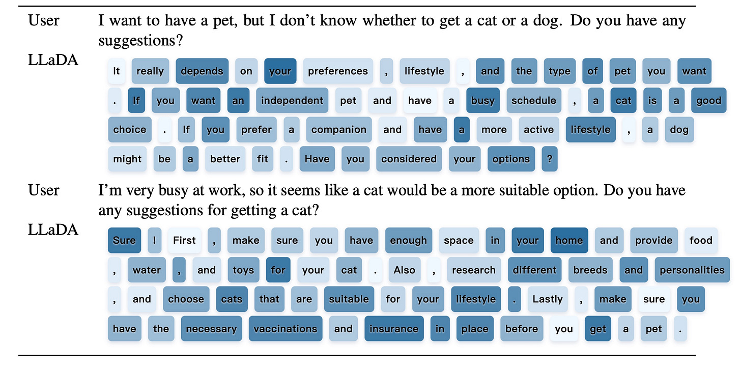 Behold LLADA (aka Large Language Diffusion with mAsking) a diffusion model for Text with an unprecedented 8B scale, trained entirely from scratch, rivaling ARMs (Auto-regressive models) like LLaMA3 8B